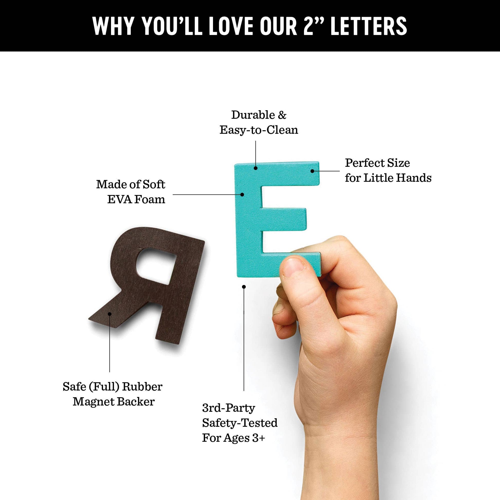 Elevate your inventory with our 36-piece modern magnetic letter sets. Each 2" tall letter is crafted from soft EVA foam with a full rubber magnetic backing, ensuring safety for kids aged 3 and up. Perfect for little hands learning their letters, these magnetic sets combine fun and education in a stylish package. Rainbow Pop is a bright and modern color combo. Key Benefits for Retailers: 60% margins and price point under $25 for faster turnover • Growing customer base as kids age into the product • Nearly universal purchase for homes with kids • Ideal for birthdays, holidays, Easter, and homeschooling. Sets include 26 letters + 10 numbers in a peg-ready package. magnet letters, magnetic letters, magnet toys, alphabet toys, alphabet magnets, letters for learners, learning toys, easter basket gifts, playroom decor, kids gifts, magnetic letter board, classic toys, educational toys, back to school, teacher gifts, Montessori toys, rainbow toys