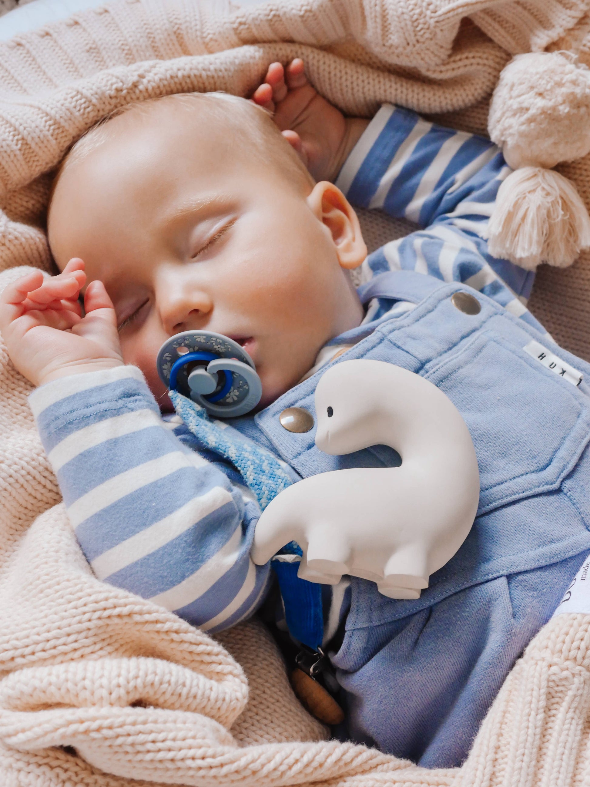 This adorable natural rubber Brachi dinosaur is a wonderfully safe and engaging multi-purpose toy for your little one. It has an in-built rattle that has a soothing sound. It is safe for teething and is a fun bath-time toy. These toys are a great way to develop love and curiosity about animals.