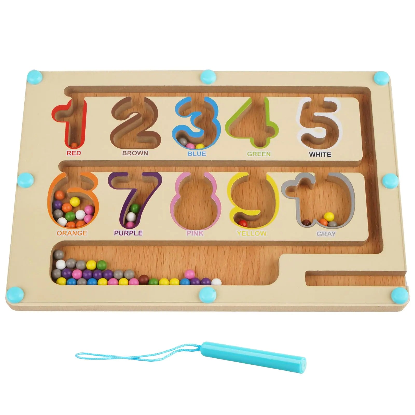 [Engaging Magnetic Learning Play: This magnetic maze introduces a hands-on approach to number and color recognition. Kids use a magnetic pen to guide beads through vibrant tracks building counting skills while developing hand-eye coordination. Smooth and Effortless Control: The enhanced magnetic pen allows for easy precise bead movement. Children can enjoy navigating beads one by one promoting patience and attention to detail during play. Durable and Kid-Safe Design: Built with solid wood and featuring a smooth rounded design this maze is durable and safe for little hands. The securely sealed board ensures that all pieces stay in place making it worry-free for parents. Perfect for Family and Group Play: Whether at home or in a classroom this maze encourages interactive learning. It’s a great way for kids to take turns collaborate and strengthen social skills while having fun together. Ideal Gift for Learning and Fun: Packaged in an attractive gift box this magnetic puzzle is perfect for preschoolers. Whether for birthdays holidays or as a travel toy it offers both entertainment and education for curious young minds.]